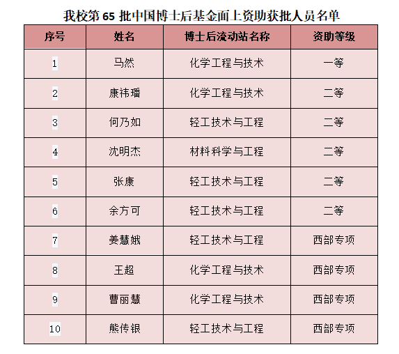 第65批中國(guó)博士后科學(xué)基金面上項(xiàng)目資助名單近日由中國(guó)博士后科學(xué)基金會(huì)公布,我校共獲批資助項(xiàng)目10項(xiàng)(一等1項(xiàng),二等5項(xiàng),西部專項(xiàng)4項(xiàng)),相較第64批面上資助全國(guó)排名躍升22個(gè)位次,獲批數(shù)量再創(chuàng)新高。