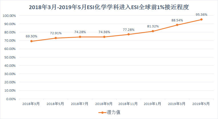 我校目前ESI綜合排名數(shù)據(jù)顯示出3項利好:一是部分學科“潛力值”增幅喜人,前景可期?;瘜W學科潛力值達到95.36%,較去年同期百分比提升了22.45個百分點,為我校最具潛力進榜ESI的學科;工程學科潛力值為52.97%,較3月份增長4.13個百分點,學科潛力已初步顯現(xiàn)。