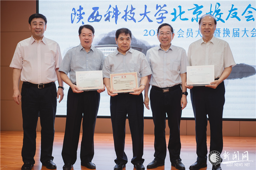 李學(xué)軍宣讀陜西科技大學(xué)校友總會批復(fù)。大會選舉產(chǎn)生了新一屆校友會會長、副會長成員:楊承杰(皮78)當(dāng)選會長,王延才(機(jī)77)、李玉中(皮85)、劉曉華(機(jī)74)、李建國(紙80)當(dāng)選副會長,張振華(食品02)當(dāng)選秘書長,王勇(食品87)、王寧寧(電信06)當(dāng)選副秘書長。在會上,王世成(機(jī)76)、陳鄂生(紙77)、陳元魁(陶80)、周國祥(皮87)、王根保(皮84)被聘為名譽(yù)會長。