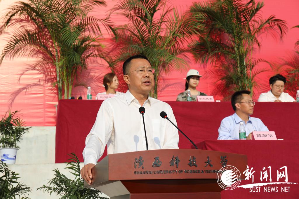 上午8點,大會在莊嚴(yán)的國歌聲中拉開序幕,馬建中代表學(xué)校向2019級新生表示衷心的祝賀和熱烈的歡迎,并做了題為“傳承大學(xué)精神,譜寫青春華章”的講話。他回顧了學(xué)校從1958年創(chuàng)建以來,歷經(jīng)“三次創(chuàng)業(yè)、兩次搬遷”,在艱難曲折與砥礪奮斗中,鑄就了“以自強(qiáng)不息、艱苦奮斗的創(chuàng)業(yè)精神,求實創(chuàng)新、銳意進(jìn)取的科學(xué)精神,扎根西部、服務(wù)社會的奉獻(xiàn)精神”為內(nèi)涵的“三創(chuàng)兩遷”精神的凝練歷程。他指出,“三創(chuàng)兩遷”精神是全體陜科大人的寶貴財富,是賡續(xù)60余年的精神火種,并以我校大學(xué)精神的內(nèi)涵為主線,深情寄語全體2019級新生:
