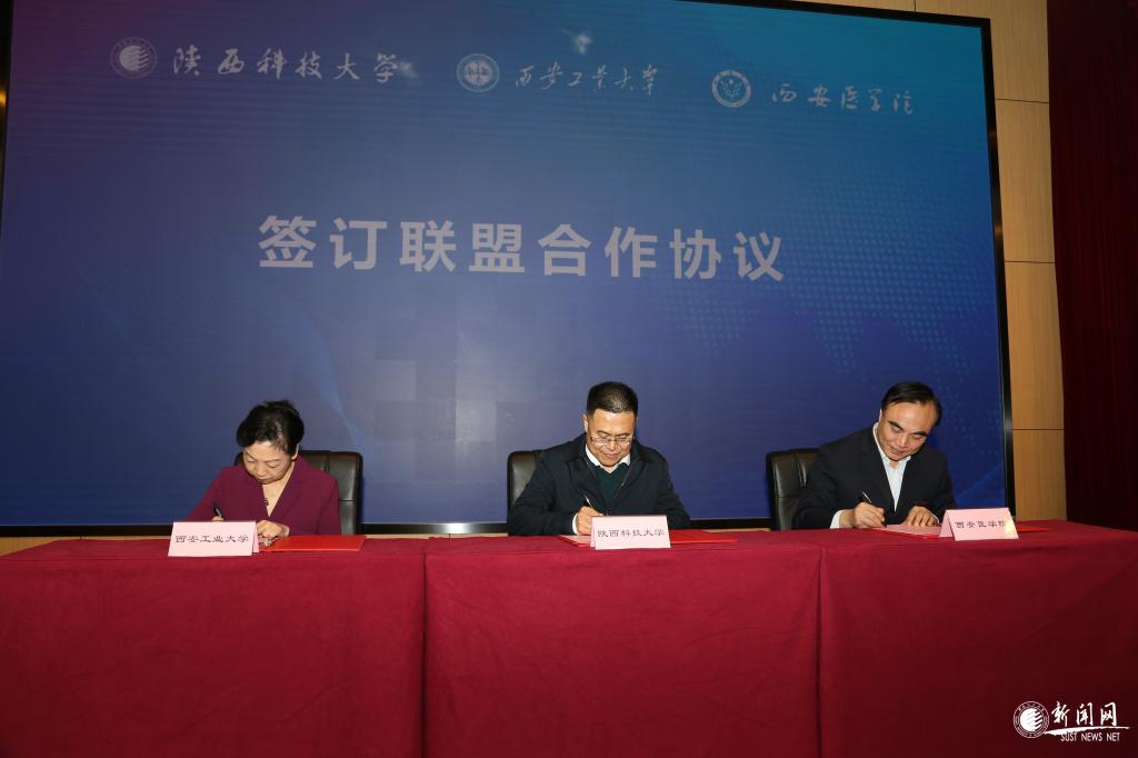 成立大會(huì)上,馬建中、雷亞萍、楊帆代表三校共同簽訂了《陜西科技大學(xué)西安工業(yè)大學(xué)西安醫(yī)學(xué)院未央高校聯(lián)盟合作框架協(xié)議》,李志健、陳樺、姚文柱簽訂了《教學(xué)督導(dǎo)協(xié)議》《圖書(shū)資源共享協(xié)議》《校醫(yī)院合作協(xié)議》等三個(gè)分協(xié)議,與會(huì)領(lǐng)導(dǎo)嘉賓上臺(tái)共同推動(dòng)啟動(dòng)桿,啟動(dòng)未央高校聯(lián)盟,標(biāo)志著啟動(dòng)聯(lián)盟合作各項(xiàng)工作實(shí)質(zhì)性開(kāi)展。