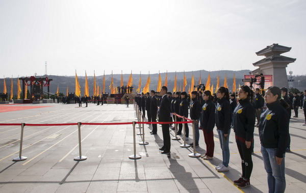 “我祖赫赫,開辟洪荒。功化神圣,世代仰望?!?月5日上午,備受矚目的乙未年(2015)清明公祭軒轅黃帝典禮在我省黃陵縣橋山黃帝陵祭祀廣場(chǎng)隆重舉行。萬余名海內(nèi)外中華兒女代表,滿懷虔誠與崇敬之情,穿過軒轅橋,登上龍尾道,齊聚軒轅殿祭祀廣場(chǎng),參加公祭活動(dòng)。我校500名大學(xué)生,為公祭活動(dòng)現(xiàn)場(chǎng)提供秩序維護(hù)志愿服務(wù),成為典禮現(xiàn)場(chǎng)的一大亮點(diǎn)。