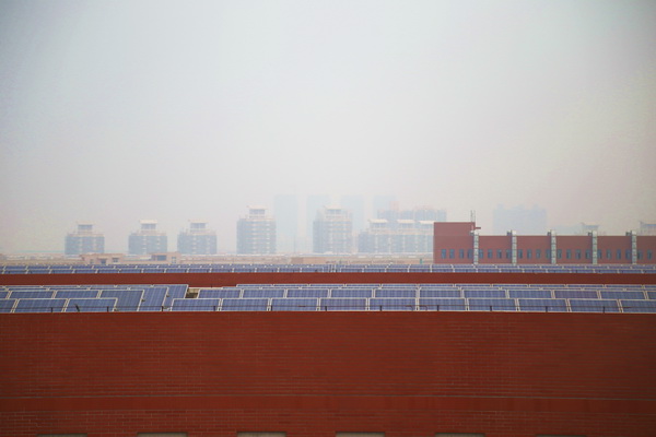 到了晌午太陽(yáng)正烈的時(shí)候,種馬剛卻 “習(xí)慣”性地走出監(jiān)控室,來(lái)到門外的天臺(tái)上,開始對(duì)架設(shè)在此的一列列太陽(yáng)能電池板進(jìn)行巡視,查看是否有破損或者臟污。從一號(hào)教學(xué)樓A座到F座,1萬(wàn)多平方米的樓頂上共有3640片太陽(yáng)能電池板,即使不是每次都會(huì)全部走遍,但在艷陽(yáng)炙烤之下、周身環(huán)伺發(fā)燙的電池面板,這樣一趟走下來(lái)并不算輕松。