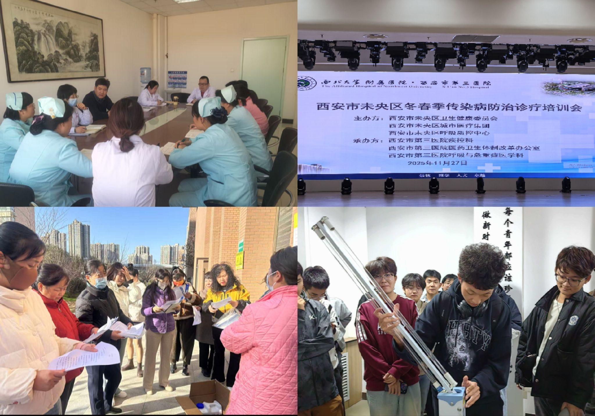 針對冬春季諾如病毒、流感、水痘等傳染病高發(fā)的特點(diǎn),后勤服務(wù)集團(tuán)多措并舉開展防控知識(shí)宣傳,通過發(fā)放宣傳單、布置專欄、舉辦講座和現(xiàn)場活動(dòng)等多種形式,向師生宣傳防治要點(diǎn)。11月17日,邀請未央?yún)^(qū)疾控中心專家來校舉辦校園傳染病防控專題培訓(xùn);12月1日“世界艾滋病日”,校醫(yī)院聯(lián)合匯海青年志愿者聯(lián)合會(huì)舉辦“社會(huì)共治 守正創(chuàng)新 終結(jié)艾滋”主題宣傳活動(dòng)。積極運(yùn)用微信公眾號(hào)、短視頻等新媒體平臺(tái),發(fā)布《流感防控與應(yīng)對指引》推文,并制作了“消毒指導(dǎo)意見”“各種濃度含氯消毒液的配置方法”等實(shí)用短視頻,指導(dǎo)師生科學(xué)防護(hù)。