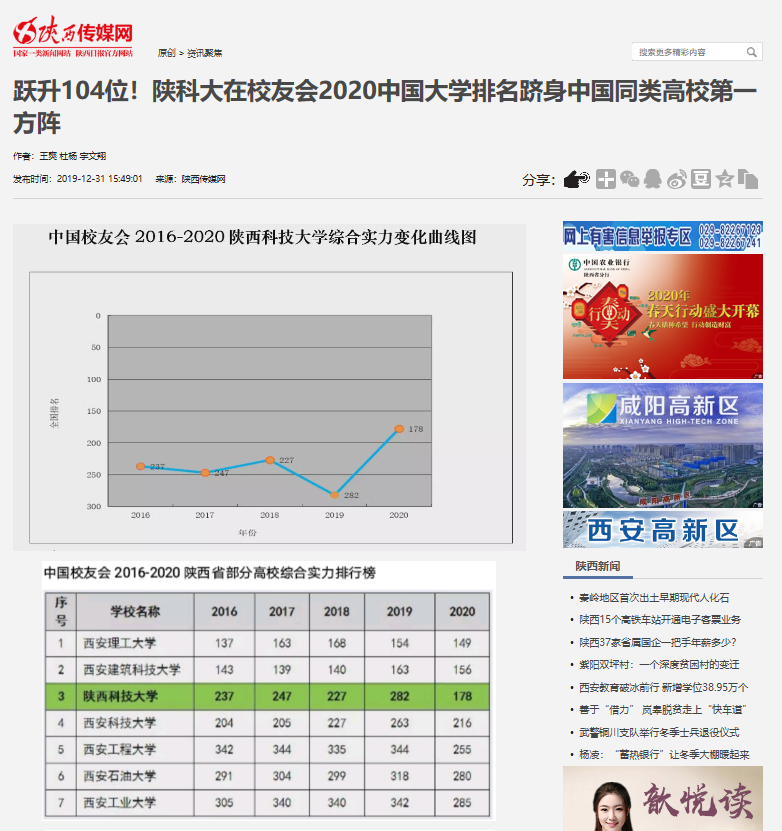 近日,陜西傳媒網(wǎng)報(bào)道陜科大在校友會2020中國大學(xué)排名躋身中國同類高校第一方陣。