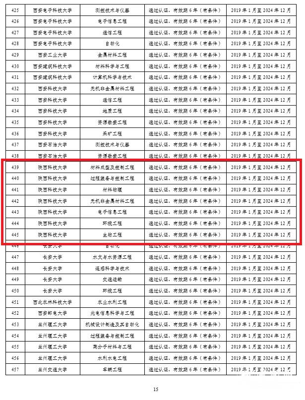 開(kāi)創(chuàng)一流本科教育新局面:6月,教育部高等教育教學(xué)評(píng)估中心和中國(guó)工程教育專業(yè)認(rèn)證協(xié)會(huì)公布了2018年參加全國(guó)工程教育專業(yè)認(rèn)證的認(rèn)證結(jié)論,學(xué)校材料成型及控制工程等7個(gè)專業(yè)順利通過(guò),位居陜西高校第一。截至2019年底,學(xué)校工程教育專業(yè)認(rèn)證正式通過(guò)、完成進(jìn)校考查、擬進(jìn)??疾椤⑿率芾韺I(yè)數(shù)合計(jì)18個(gè),位列陜西高校第三,全國(guó)輕工類高校第一名。