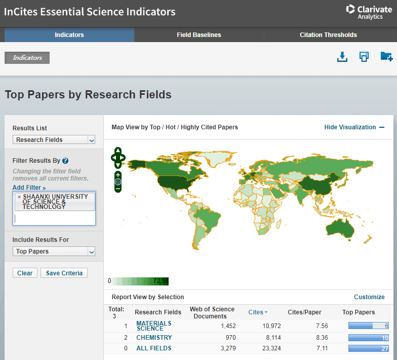 整體學(xué)科實(shí)力不斷提升:據(jù)美國(guó)ESI(Essential Science Indicators,基本科學(xué)指標(biāo)數(shù)據(jù)庫(kù))數(shù)據(jù)庫(kù)9月11日發(fā)布的最新數(shù)據(jù)顯示,陜科大化學(xué)(Chemistry)學(xué)科進(jìn)入ESI全球排名前1%。這是繼2017年1月學(xué)校材料科學(xué)學(xué)科進(jìn)入ESI全球排名前1%之后,第二個(gè)進(jìn)入國(guó)際高水平行列的學(xué)科。學(xué)校ESI全球排名前1%學(xué)科數(shù)量居省屬高校并列第2。