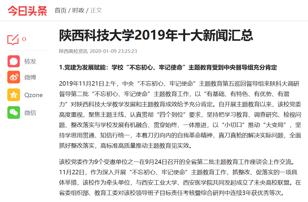 今日頭條APP:2019年度陜西科技大學(xué)十大新聞匯總
