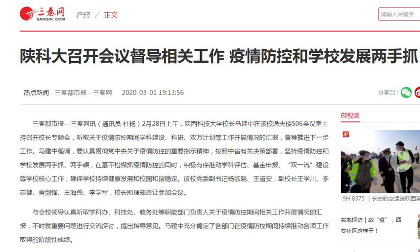 三秦網(wǎng):陜科大召開會(huì)議督導(dǎo)相關(guān)工作 疫情防控和學(xué)校發(fā)展兩手抓