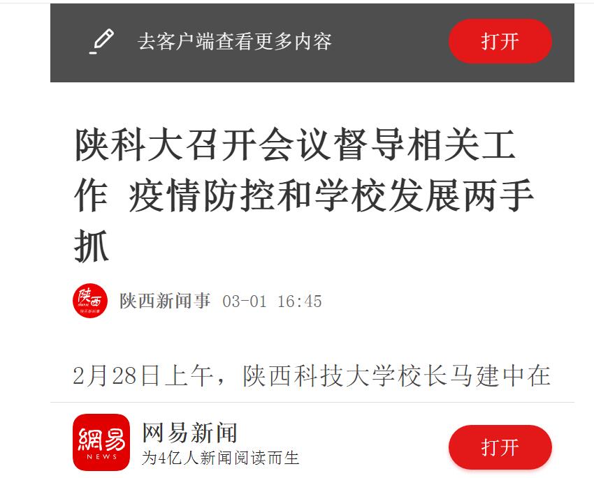 網(wǎng)易新聞APP:陜科大召開會(huì)議督導(dǎo)相關(guān)工作 疫情防控和學(xué)校發(fā)展兩手抓