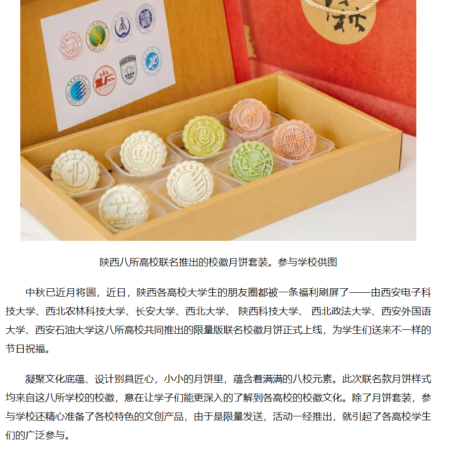 人民網(wǎng):溫暖“乘8”!陜西八所高校聯(lián)名推出校徽月餅套裝