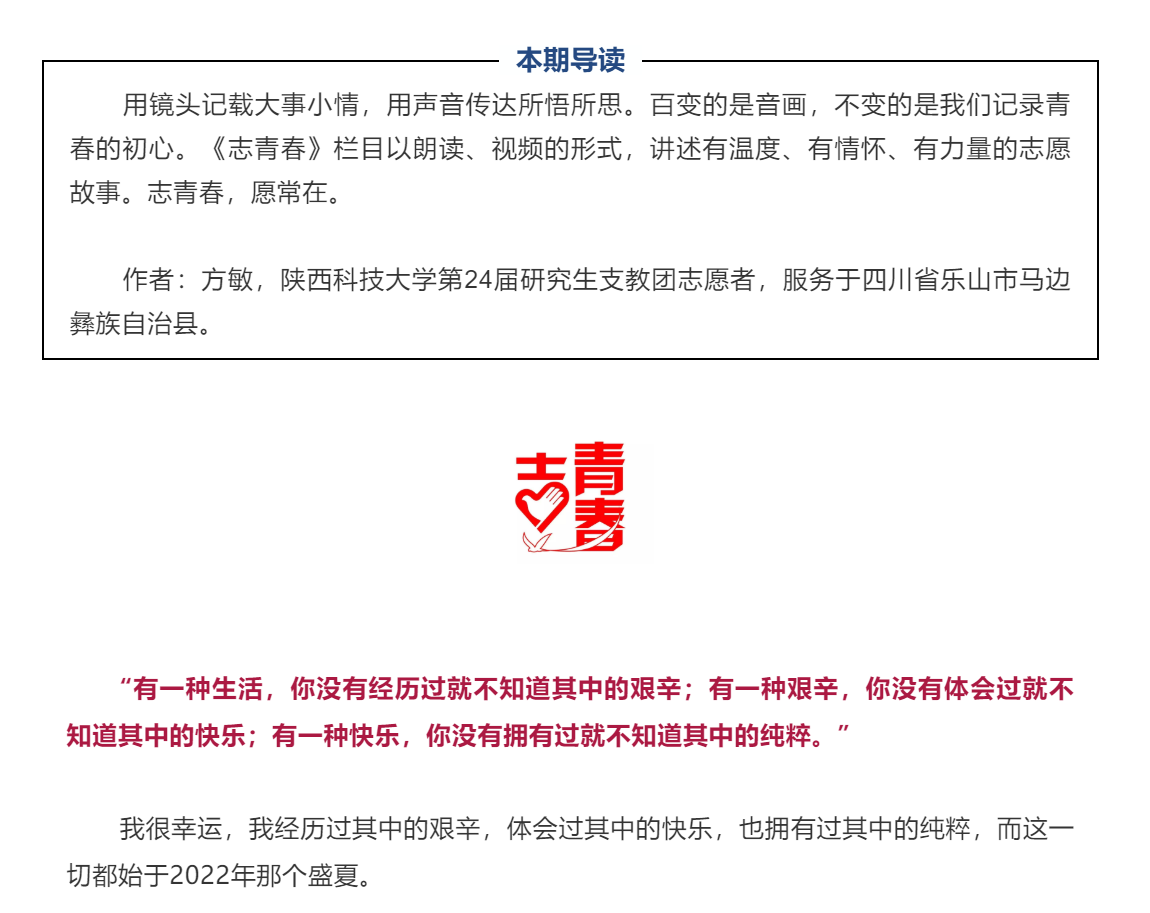 “中國青年志愿者”微信公眾號刊發(fā)我校第24屆研究生支教團志愿者方敏的志愿故事
