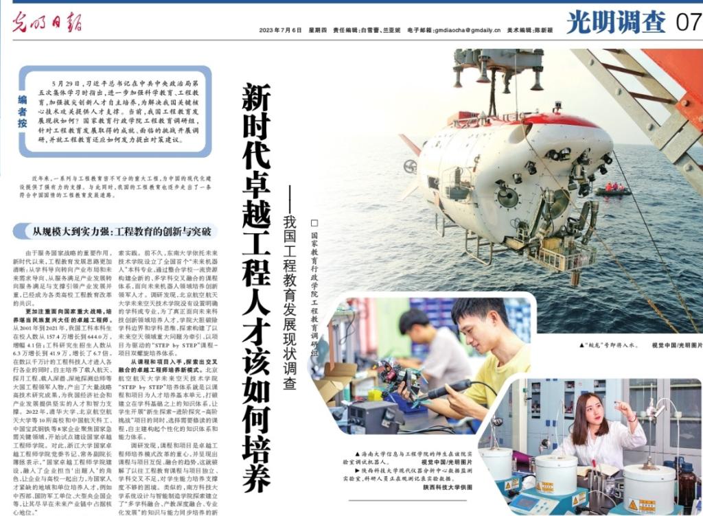 《光明日?qǐng)?bào)》:新時(shí)代卓越工程人才該如何培養(yǎng)——我國(guó)工程教育發(fā)展現(xiàn)狀調(diào)查