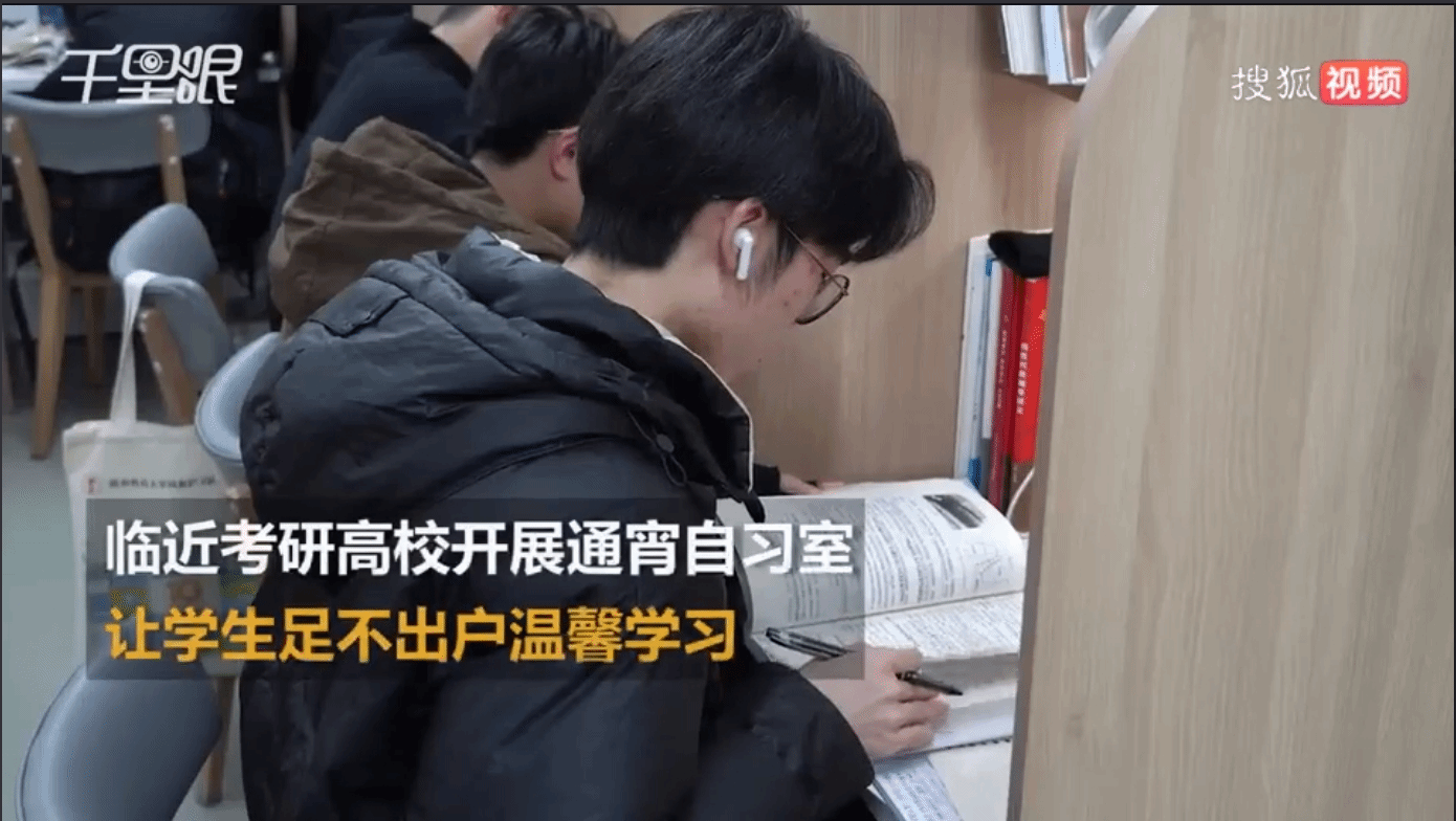 搜狐視頻:【陜西】高校為考研生開(kāi)設(shè)通宵自習(xí)室,讓學(xué)生足不出戶溫暖學(xué)習(xí)