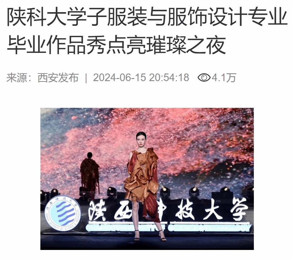 西安發(fā)布:陜科大學(xué)子服裝與服飾設(shè)計(jì)專業(yè)畢業(yè)作品秀點(diǎn)亮璀璨之夜
