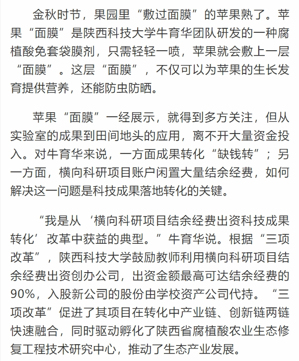 近日,《光明日?qǐng)?bào)》報(bào)道我校落實(shí)科技成果轉(zhuǎn)化“三項(xiàng)改革”政策力促“轉(zhuǎn)成功”“轉(zhuǎn)得好”。