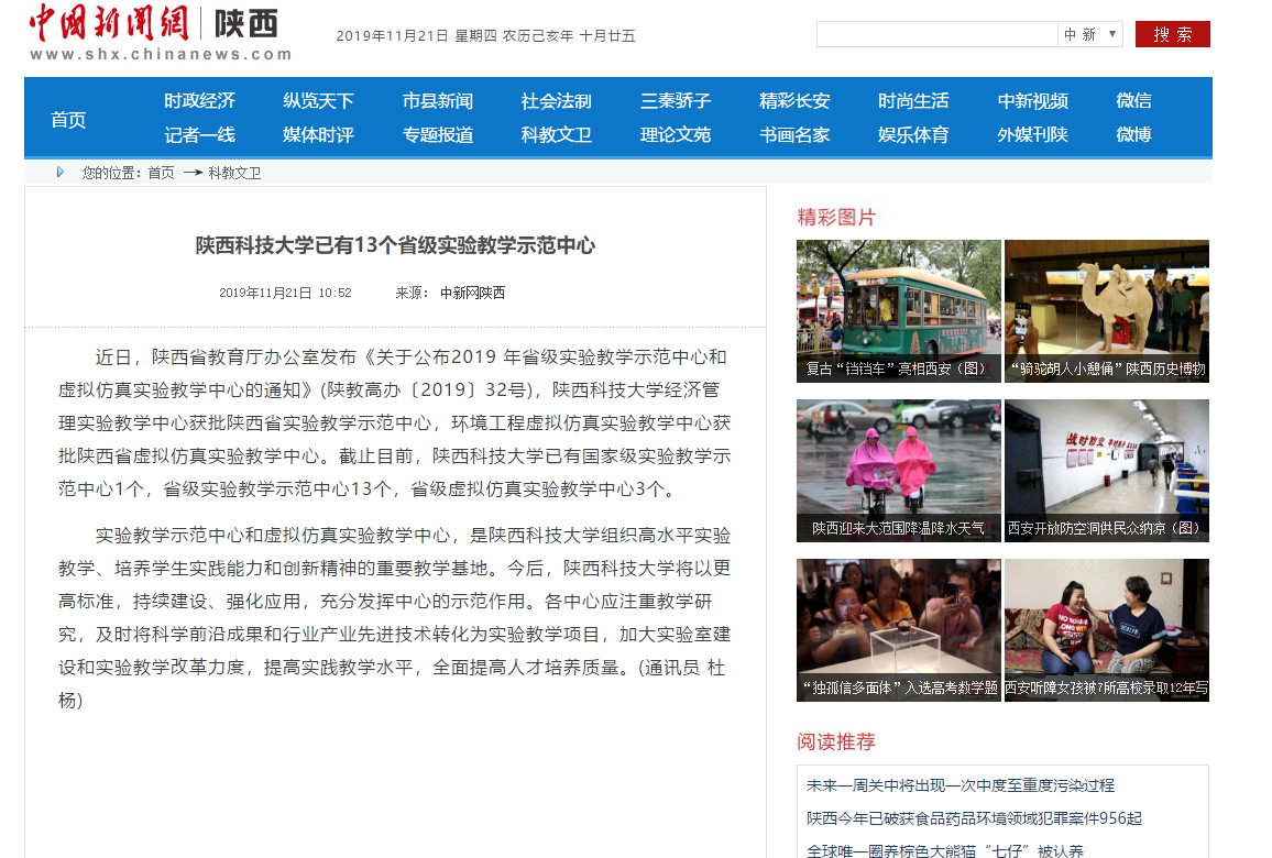 中國新聞網(wǎng):陜西科技大學(xué)已有13個(gè)省級實(shí)驗(yàn)教學(xué)示范中心