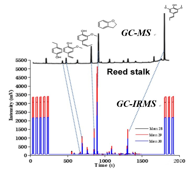圖一 蘆葦莖木質(zhì)素解聚結(jié)果譜圖