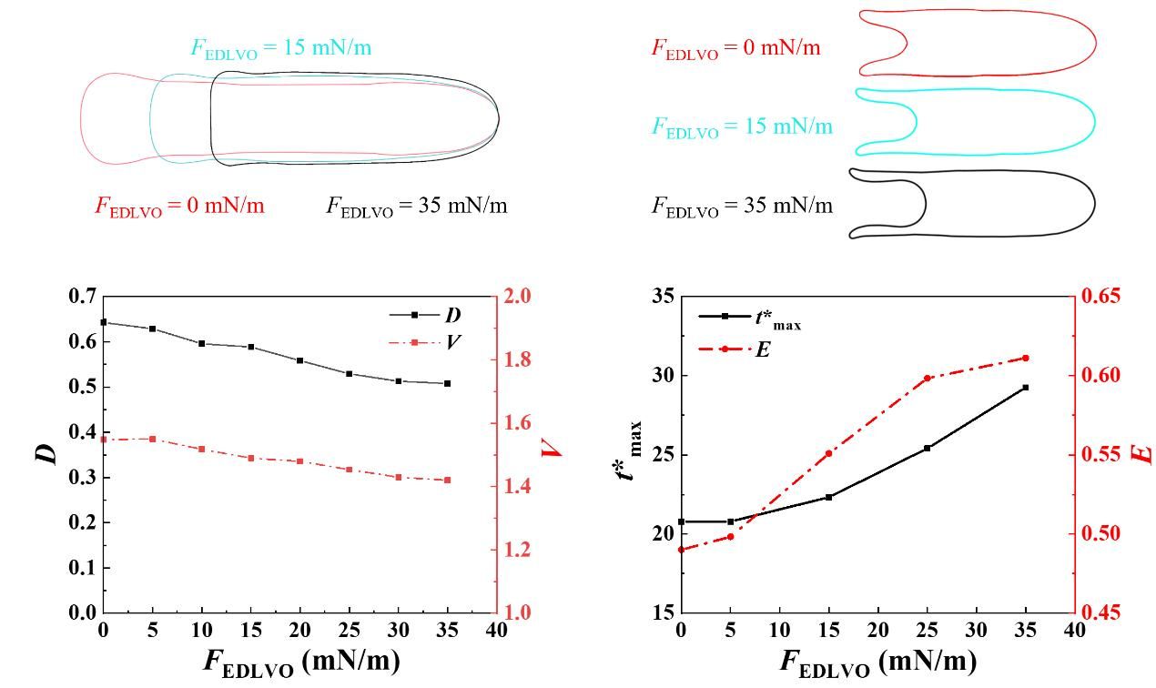揭示了在油-壁相互作用力影響下油滴脫附與捕獲過程中典型動(dòng)力學(xué)行為的轉(zhuǎn)變機(jī)制,發(fā)現(xiàn)了相互作用力對(duì)液滴脫附動(dòng)力學(xué)的影響并非只有單純的抑制作用,通過機(jī)理分析解釋了引起動(dòng)力學(xué)行為差異的原因。