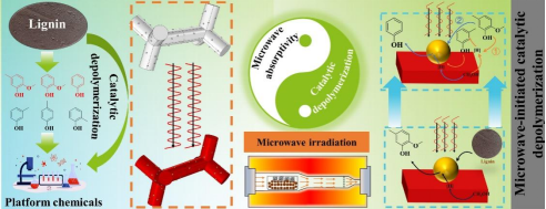 王文亮副教授等提出了一種微波響應(yīng)型催化劑,并成功用于克量級木質(zhì)素解聚蒸氣的微波輔助催化重整,為從資源豐富的木質(zhì)素中規(guī)?;@取關(guān)鍵的酚類和芳香烴類平臺(tái)化合物提供了行之有效的途徑。該研究發(fā)表于國際頂級期刊Applied Catalysis B: Environmental和Chemical Engineering Journal。