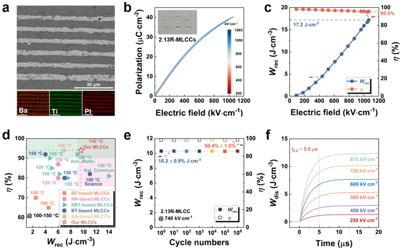 隨著5G基站、航天器載荷等高頻高功率電子系統(tǒng)的快速發(fā)展,對多層陶瓷電容器(MLCCs)提出了更高的性能要求,尤其是在體積功率密度、儲能效率與熱穩(wěn)定性方面。傳統(tǒng)鐵電陶瓷材料如BaTiO3雖具備較高極化強度,但其疇翻轉(zhuǎn)滯后損耗大、擊穿場強有限,導(dǎo)致實際儲能密度遠(yuǎn)低于理論值。