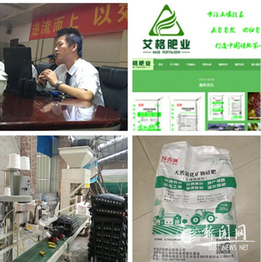 團(tuán)隊(duì)2015級(jí)研究生宋建波(學(xué)號(hào):1502002,專業(yè):材料科學(xué)與工程)經(jīng)過兩年多的試驗(yàn)和探索,通過整合團(tuán)隊(duì)及自身的技術(shù)和優(yōu)勢資源,2017年在國家級(jí)科技企業(yè)孵化器楊凌示范區(qū)創(chuàng)新創(chuàng)業(yè)園,注冊(cè)企業(yè):陜西艾格肥業(yè)有限公司,目前企業(yè)在陜西黃龍,陜西大荔已建成兩條年產(chǎn)2萬噸硅肥及土壤改良劑生產(chǎn)線,2017年底,企業(yè)產(chǎn)值1400余萬元。