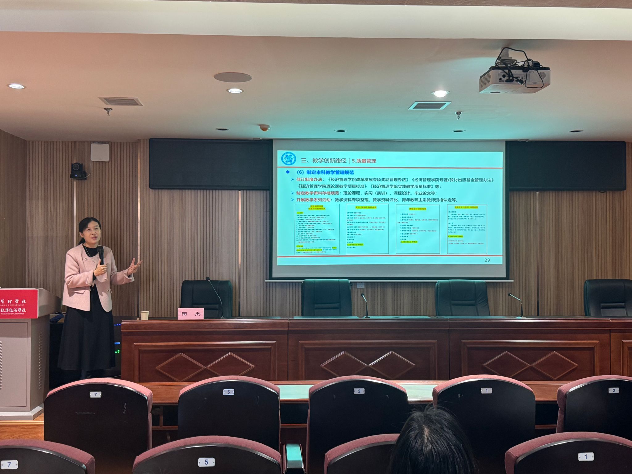 為落實本科教育教學審核評估工作要求,扎實推進質(zhì)量文化建設,健全人才培養(yǎng)質(zhì)量長效保障機制,11 月 27 日上午,應教務處、經(jīng)管學院邀請,西安工業(yè)大學經(jīng)濟管理學院副院長田杰副教授做客我?!敖逃虒W論壇”,在人文樓A712會議室作了主題為“以‘學科交叉 + 行業(yè)錨點’破解供需錯配——地方省屬高校經(jīng)管類人才培養(yǎng)創(chuàng)新與實踐”的專題報告,報告會由經(jīng)管學院副院長石乘齊主持,經(jīng)管學院教學管理人員及教師代表參加了會議。