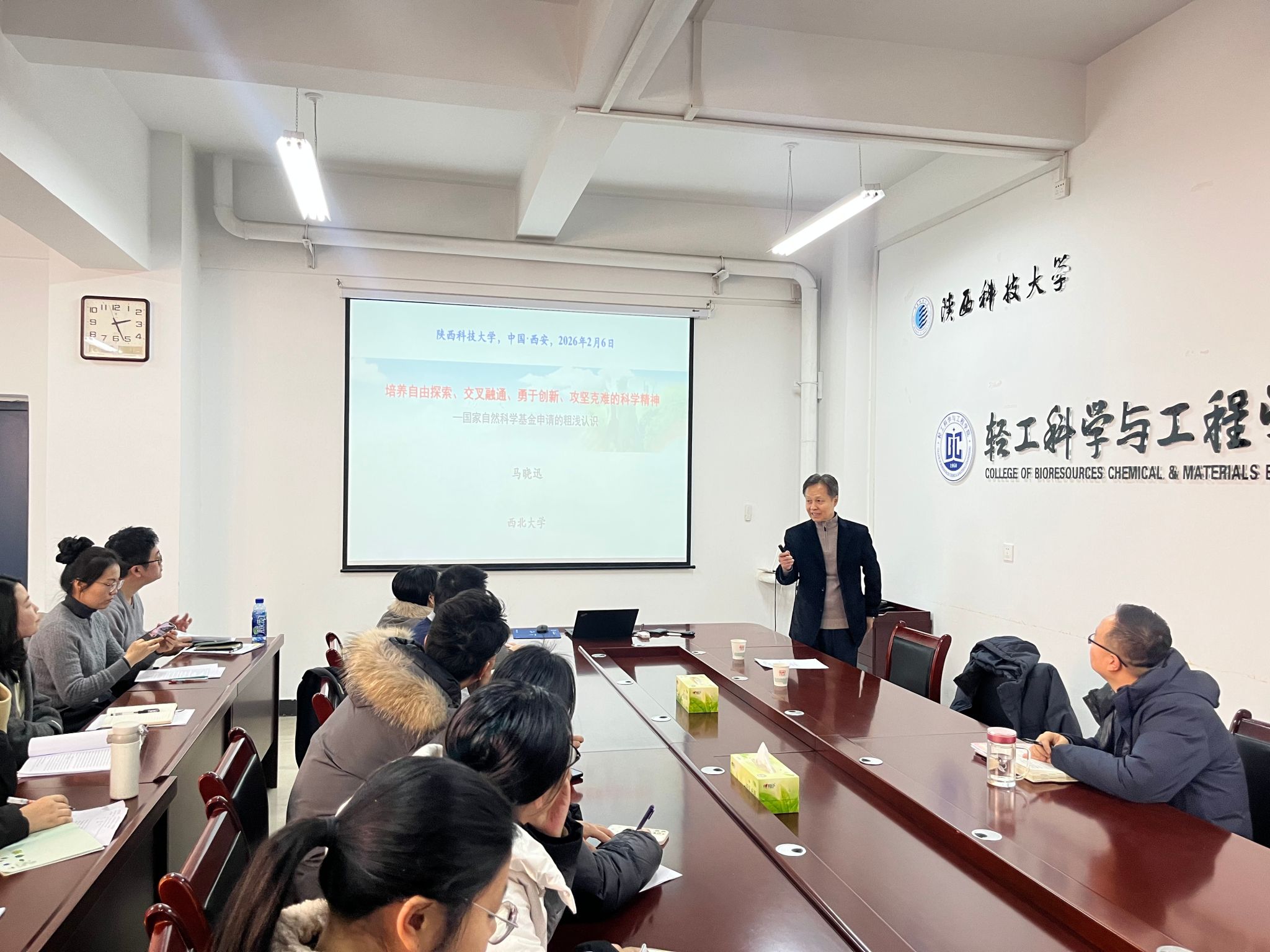 2月6日下午,應學??萍继?、輕工科學與工程學院邀請,西北大學二級教授、博士生導師馬曉迅做客我?!扒把乜茖W報告”,以“培養(yǎng)自由探索、交叉融通、勇于創(chuàng)新、攻堅克難的科學精神-國家自然科學基金申請的粗淺認識”為題作專題學術報告。報告由學院副院長劉國棟主持,我校相關專業(yè)教師、博士后參加了此次報告會。