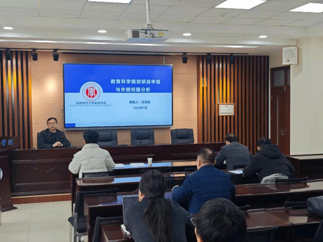 2月2日下午,應(yīng)我校文化與教育學(xué)院邀請,陜西師范大學(xué)龍寶新教授、馬君教授做客我校“前沿科學(xué)報告”做客我?!扒把乜茖W(xué)報告”。報告由武建鑫副院長主持,部分教師和學(xué)生參加了此次學(xué)術(shù)報告。