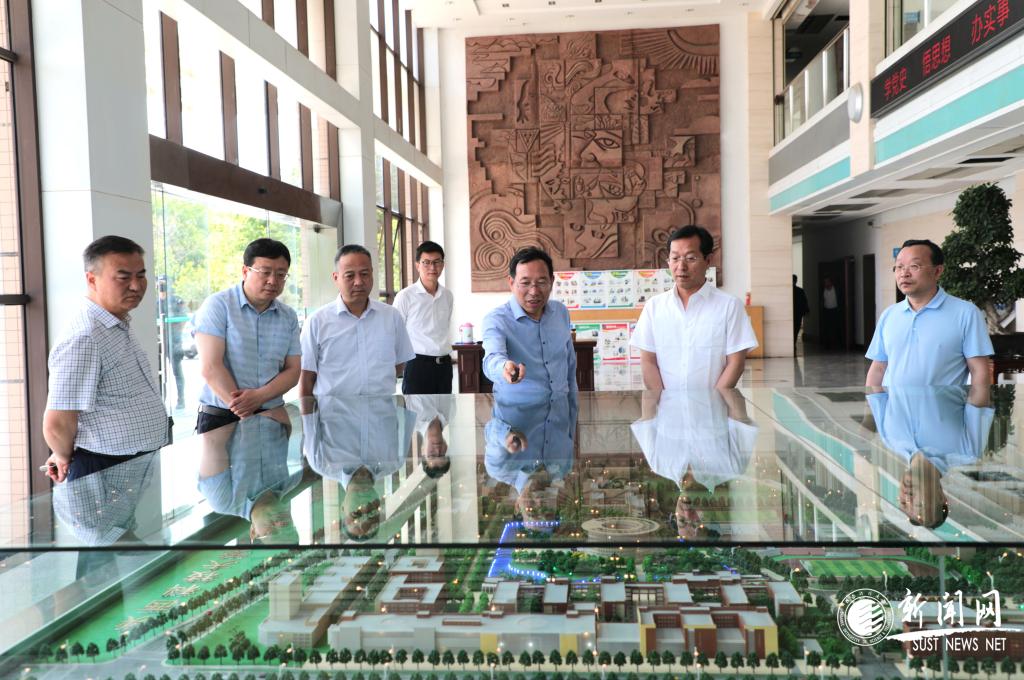 校黨委書記姚書志為巡回指導(dǎo)組講解學(xué)校沙盤模型