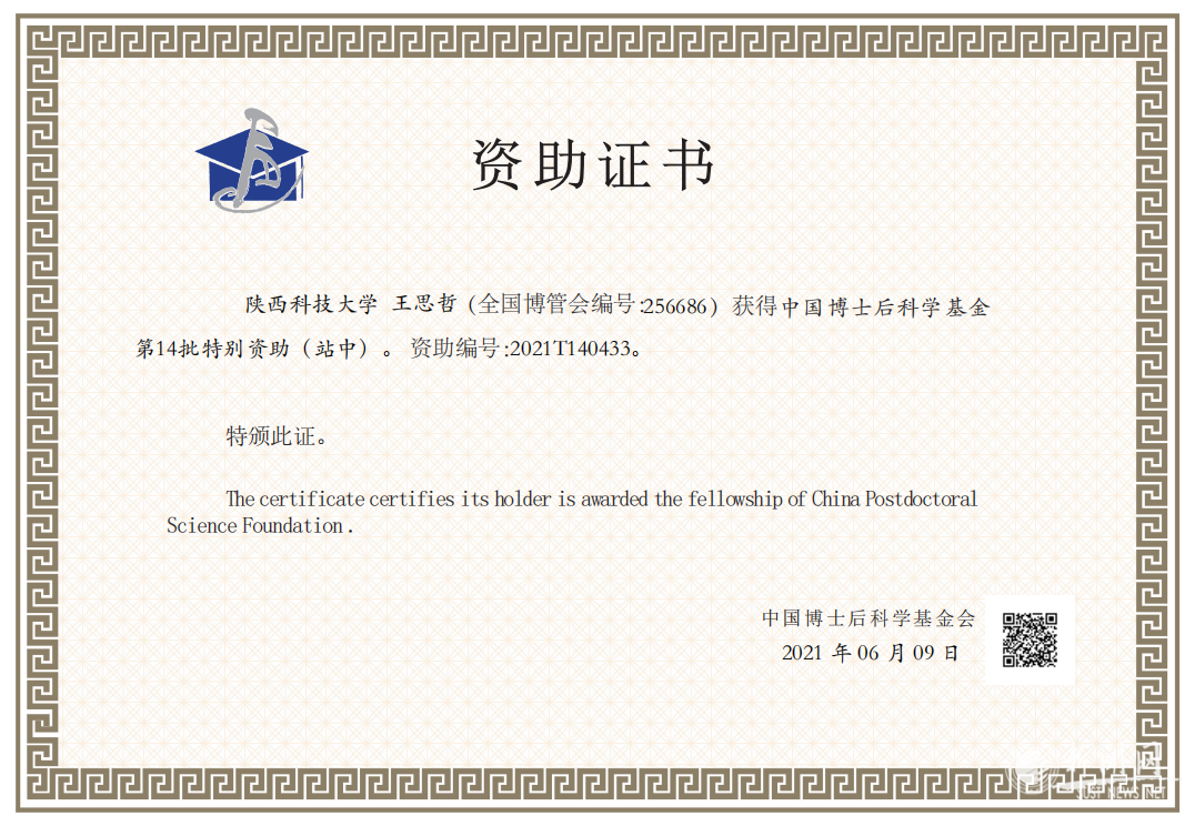 近日,中國(guó)博士后科學(xué)基金會(huì)公布了第14批特別資助(站中)項(xiàng)目獲資助人員名單,我校2名博士后人員王思哲、楊斌入選,這是我校自2016年之后,再次獲批中國(guó)博士后科學(xué)基金特別資助項(xiàng)目,獲批項(xiàng)目數(shù)量位居陜西省屬高校第3名,彰顯了學(xué)校博士后人才培養(yǎng)的可喜成果。
