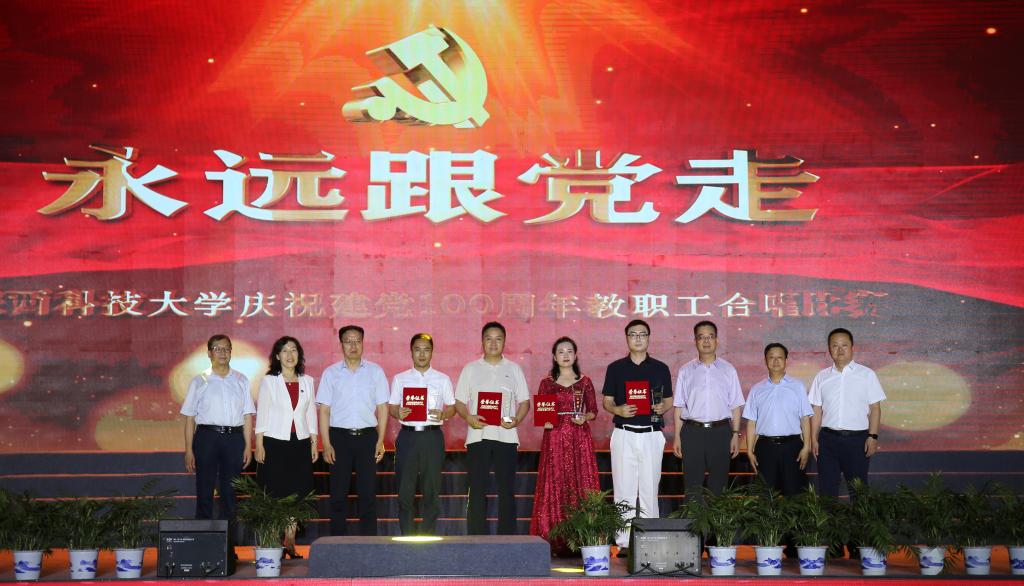 6月29日晚7時(shí)30分,陜西科技大學(xué)慶祝中國共產(chǎn)黨成立100周年教職工合唱比賽在西安校區(qū)標(biāo)準(zhǔn)田徑場舉行。來自學(xué)校工會(huì)委員會(huì)18個(gè)分會(huì)的合唱隊(duì),代表全校教職員工,用歌聲共慶建黨100周年。校黨委書記姚書志,校長李志健,校黨委副書記楊欲曉、王道安,校黨委副書記、紀(jì)委書記、監(jiān)察專員王為民,校黨委副書記郭強(qiáng),副校長王學(xué)川、黃劍鋒、李學(xué)軍、蒲永平,總會(huì)計(jì)師徐曉峰,校長助理鄭恩讓與師生代表齊聚一堂,觀看了精彩的演出,并向獲得比賽一二三等獎(jiǎng)和優(yōu)秀組織獎(jiǎng)的分會(huì)頒發(fā)榮譽(yù)證書。