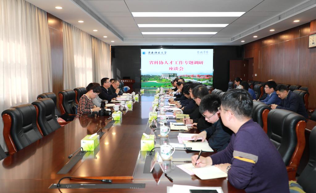 10月18日上午,陜西省科學(xué)技術(shù)協(xié)會(huì)黨組書(shū)記李豫琦,黨組成員、副主席李延潮等一行5人來(lái)我校開(kāi)展人才工作專題調(diào)研。校黨委書(shū)記姚書(shū)志陪同調(diào)研,副校長(zhǎng)黃劍鋒主持座談會(huì)。
