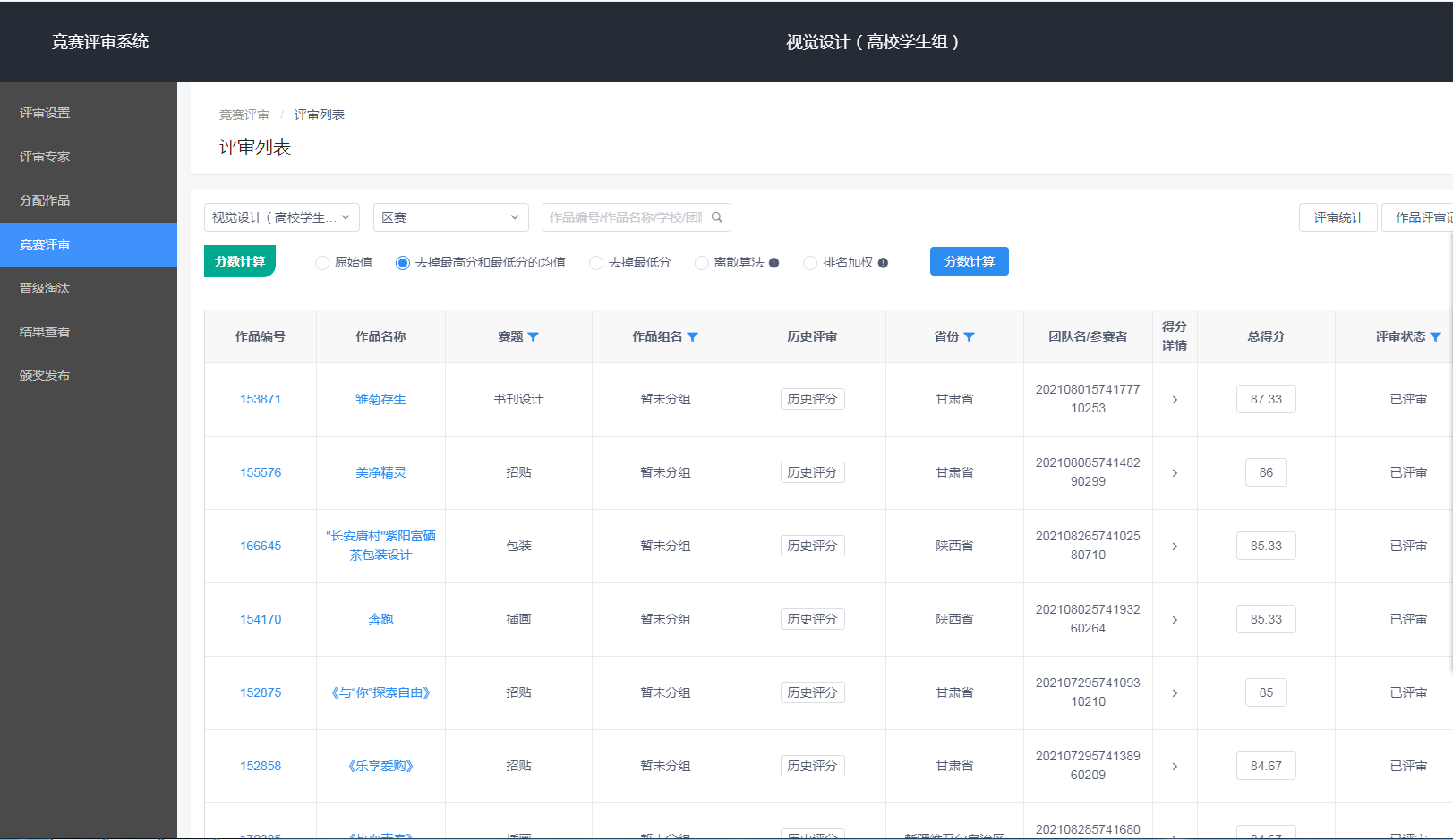 10月6日,根據(jù)《第七屆兩岸新銳設(shè)計競賽·華燦獎評審工作方案》,華燦獎西北賽區(qū)組委會從華燦專家?guī)炖镥噙x出25位專家進行視覺設(shè)計類、數(shù)字多媒體設(shè)計類、產(chǎn)品設(shè)計類、工藝美術(shù)類、空間環(huán)境類等5個類別的評選。評審前,西北賽區(qū)組委會主任李志健對這25位評委資格進行了審定。經(jīng)過25位評委(其中本賽區(qū)外評委16人,占比64%;全國各類教指委委員評委10人,占比40%)近十天的嚴格評審,共評選出555件作品晉級全國賽,西北賽區(qū)組委會按照華燦獎每個組別15%(一等獎1%、二等獎4%、三等獎10%)的獲獎比例,評審出本賽區(qū)各組別一、二、三等獎的獲獎,并上報華燦獎全國組委會。