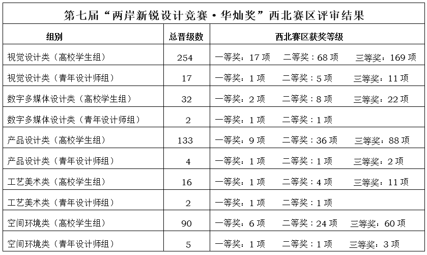 兩岸新銳設(shè)計競賽“華燦獎”是旨在發(fā)現(xiàn)、推介兩岸三地青年設(shè)計師的綜合設(shè)計賽事。2018年起納入教育部“三評一賽”保留項目清單,2019年進入“高校學(xué)科競賽評估排行榜”。2021年第七屆“華燦獎”設(shè)置了東北賽區(qū)、華北賽區(qū)、華東賽區(qū)、華中賽區(qū)、華南賽區(qū)、西南賽區(qū)、西北賽區(qū)、香港賽區(qū)、澳門賽區(qū)、臺灣賽區(qū)等賽區(qū)。西北賽區(qū)牽頭單位為陜西科技大學(xué)。