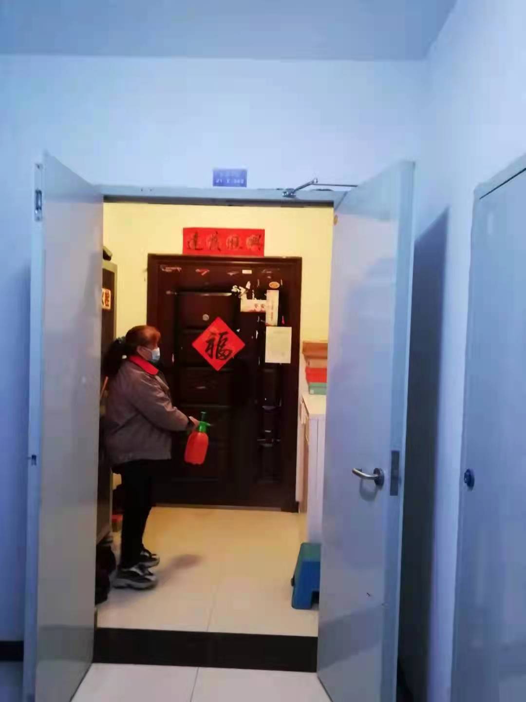 沁園小區(qū)作為學(xué)校家屬區(qū),現(xiàn)有1533套房入住,居住4700余人。小區(qū)物業(yè)在張建軍經(jīng)理、社區(qū)王先峰主任的帶領(lǐng)下,“舍小家、顧大家”。原本73名工作人員,在12月23日封城前,除個(gè)別情況,69名回歸崗位,其中臨聘人員67人。分為保衛(wèi)和服務(wù)兩支隊(duì)伍,保社區(qū)正常運(yùn)轉(zhuǎn)、服生活照常進(jìn)行。21號(hào)樓2單元打掃衛(wèi)生的大姐李春苗,今年61歲,她是小區(qū)封閉以來,最早回來報(bào)道的人。她說當(dāng)時(shí)社區(qū)通知他們回來封閉管理,她有些遲疑。但自己女兒也是做物業(yè)的,深知其中不易。大姐說:“咱沒啥文化,就是干點(diǎn)活兒,有啥不應(yīng)該的。如果你不干,她不干,小區(qū)樓道、衛(wèi)生得臟成啥樣?”。她毅然放下家里年幼的孫子,來到沁園小區(qū),6歲的孫子不讓李大姐走,但不走的話,小區(qū)就快封閉了,在孩子的哭鬧聲中,大姐抹著眼淚走了。后來兒子打電話抱怨:“你就這么愛干活,掙錢那么要緊?”大姐說到這兒,不禁抹了眼淚。樂觀開朗的大姐說,學(xué)校對(duì)我們很好,社區(qū)為每位臨聘人員每天補(bǔ)助20元伙食費(fèi),而且頭10天的錢,已經(jīng)打到我們的賬戶。疫情期間,干凈衛(wèi)生尤為重要,我們更得把小區(qū)清理好,門守好。