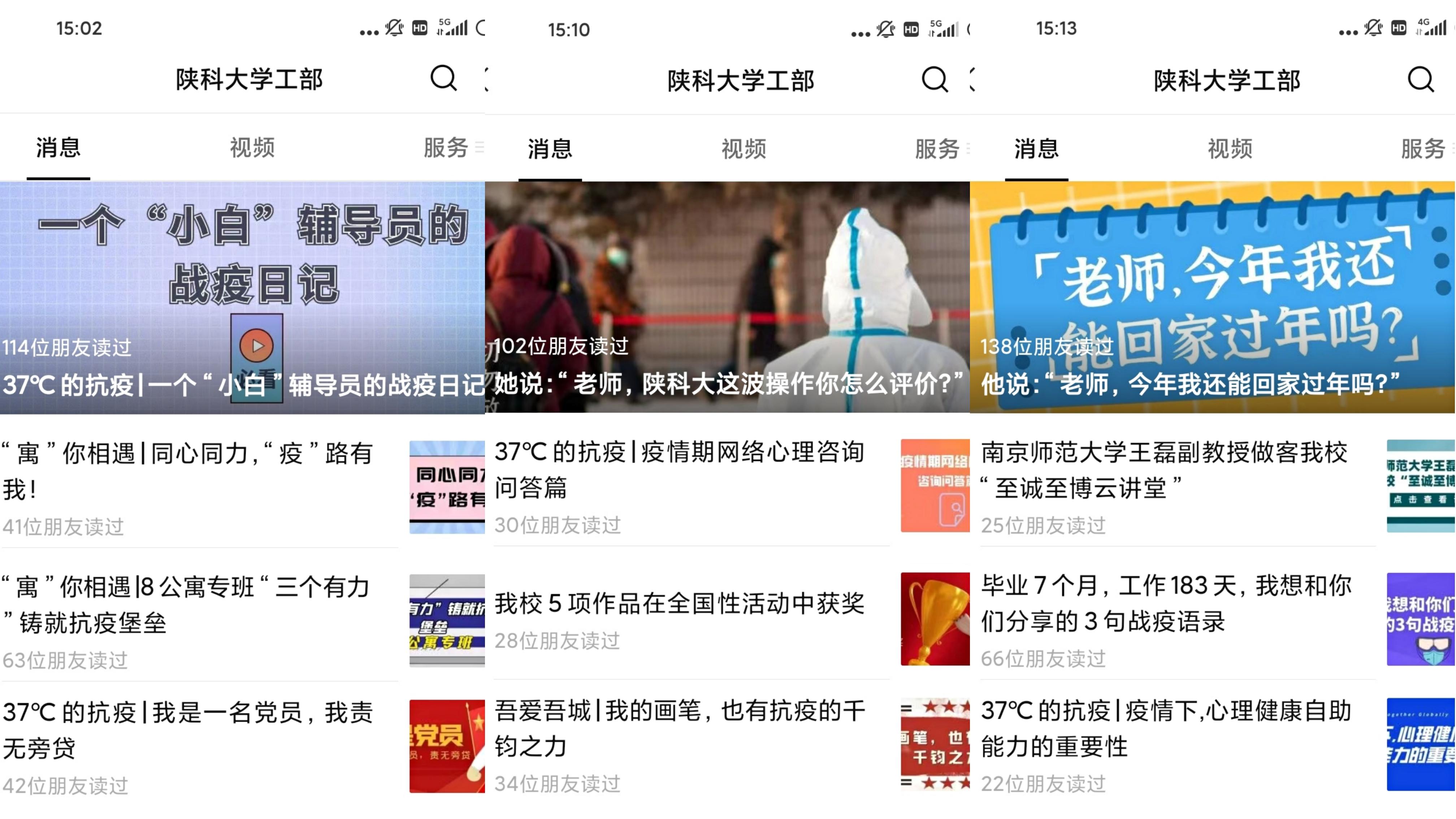 為了給抗疫封控中的同學(xué)加油打氣,網(wǎng)絡(luò)思想政治工作中心房若愚老師從12月20日向全校同學(xué)發(fā)出《致全體同學(xué)的倡議書》算起,已經(jīng)連續(xù)堅守崗位19天,這段時間她利用易班、微信、抖音、B站等平臺,開通5個抗疫專欄,審核發(fā)布網(wǎng)文72篇,短視頻104部,讓同學(xué)們在困惑、煩惱時能聽聽“他(她)說”,明白到底“為什么”;在信心不足時能看看“吾愛吾城”,感受“37℃的抗疫”溫暖。五公寓專班教師、經(jīng)管學(xué)院輔導(dǎo)員楊亞倩,指導(dǎo)學(xué)生團隊,推出“三行家書,待你親啟”“我的畫筆,也有抗疫的千鈞之力”“論帶飯的10001種方式”等學(xué)生喜愛的網(wǎng)絡(luò)文化作品,用影像定格疫情防控中的感動瞬間,用聲音傳遞戰(zhàn)勝疫情的堅定信念。我校師生的抗疫作品被陜西都市快報、華商報等媒體報道。五公寓學(xué)生況雅麗表示,“因為疫情、因為封控,這個冬天格外寒冷,但通過這些網(wǎng)絡(luò)作品,我看到了所有人的付出與努力,看到了大家戰(zhàn)勝疫情的信心與決心!”