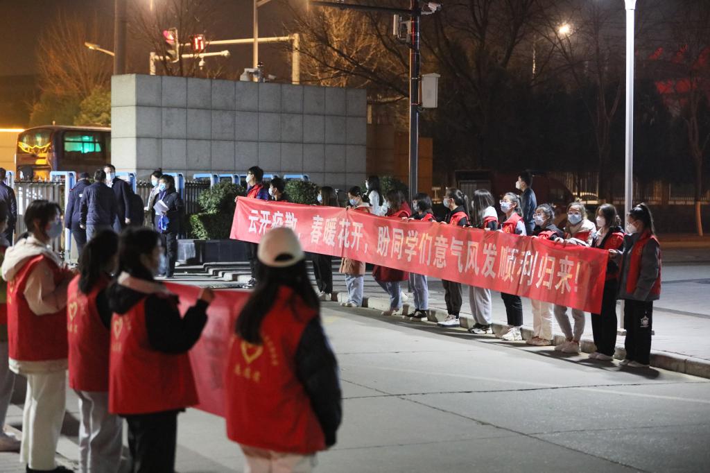 在運送保障組,30多名校衛(wèi)隊員日夜輪崗、全程保障學生的出行,他們凌晨四點就來到發(fā)車點,殷勤地提醒同學們帶好行李、檢查好所有必備的證明。