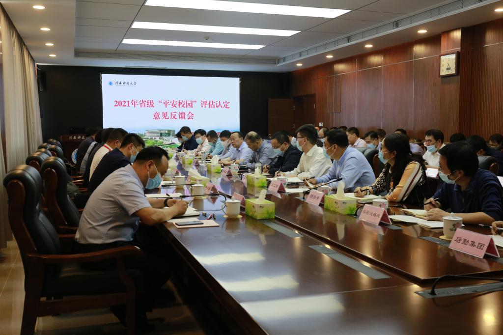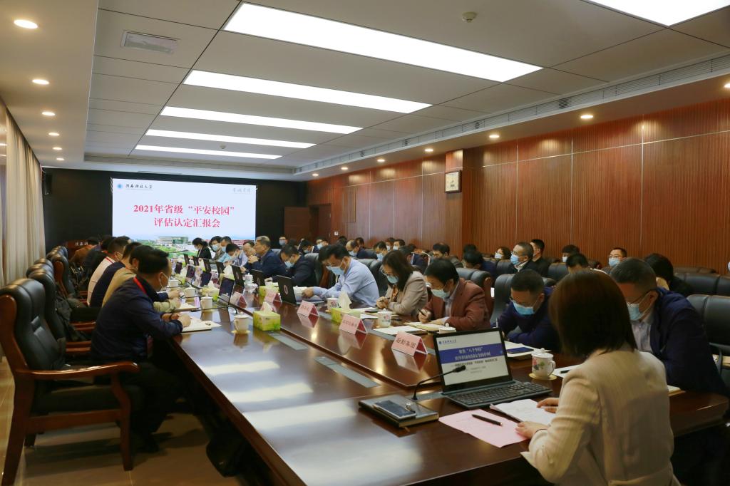 當(dāng)天上午,2021年省級“平安校園”評估認(rèn)定匯報會在我校西安校區(qū)逸夫樓506會議室舉行,李志健致歡迎辭,代表學(xué)校對檢查組一行表示歡迎并介紹了學(xué)校的辦學(xué)歷史、發(fā)展現(xiàn)狀、辦學(xué)成果和“平安校園”建設(shè)基本情況。他著重介紹了學(xué)校在“十三五”期間取得的成績以及學(xué)校確立的“十四五”期間的新發(fā)展階段、新發(fā)展理念、發(fā)展路徑和學(xué)科發(fā)展“四新”格局。他指出,學(xué)校高度重視安全穩(wěn)定、服務(wù)保障、疫情防控工作,建立起了維護校園安全穩(wěn)定的長效機制,有力維護了校園平安和諧穩(wěn)定。他表示,學(xué)校各項工作成績的取得,同樣離不開兄弟院校的幫助支持。他希望各位專家在檢查評估中,多為學(xué)?!捌桨残@”建設(shè)工作把脈問診,并將一些好經(jīng)驗好做法傳經(jīng)送寶,使我?!捌桨残@”建設(shè)工作更上一層樓。