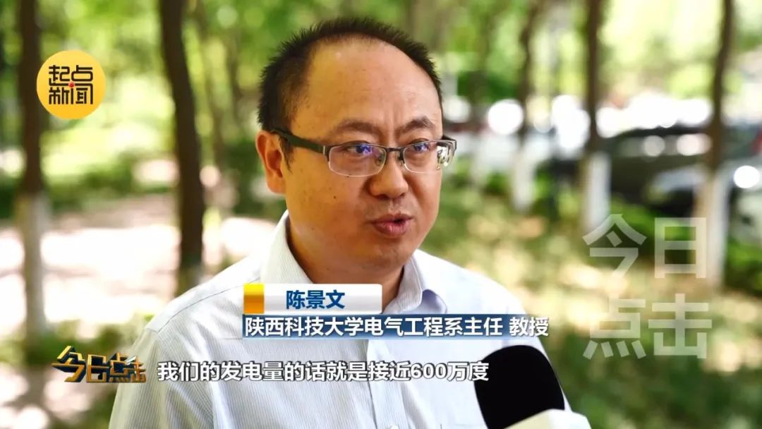 陜西科技大學(xué)電氣工程系主任陳景文教授:截至目前,我們的發(fā)電量的話的就是接近600萬度,年均的話大概60萬度,如果等量成標(biāo)煤的話,相當(dāng)于節(jié)約了2400噸標(biāo)煤,節(jié)約二氧化碳的排放量接近6000多噸。