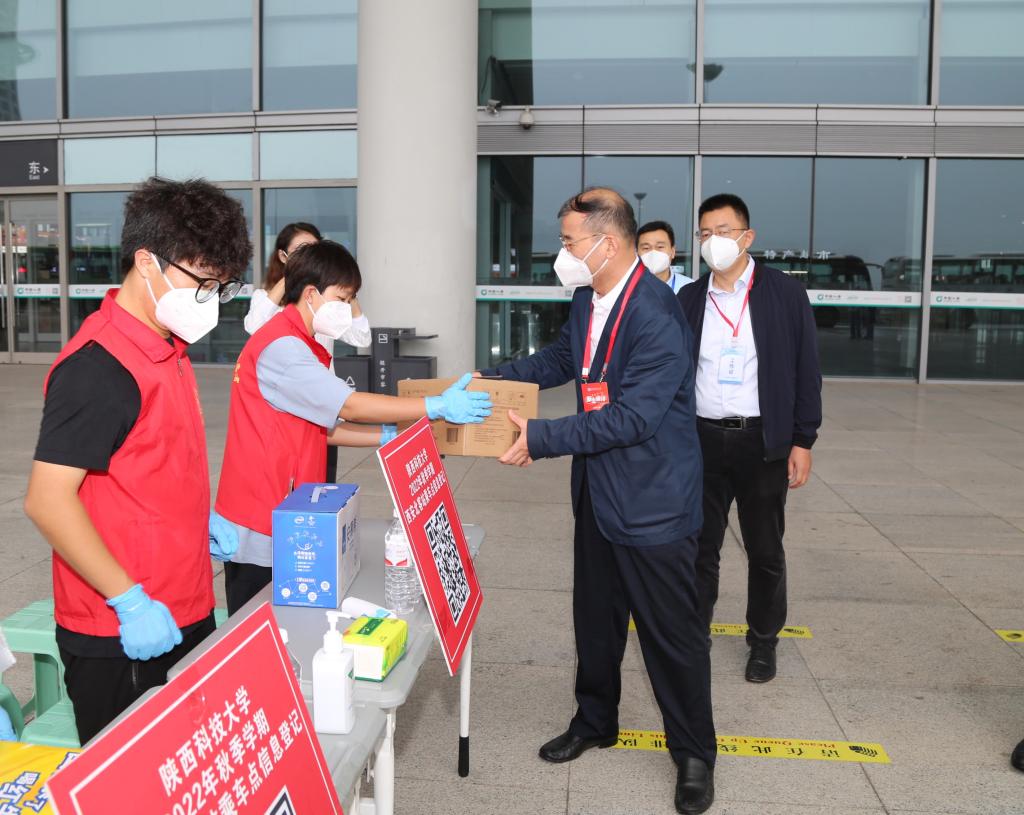 9月18日,陜科大校園喜迎新一批學(xué)子。校長(zhǎng)李志健帶隊(duì)深入校園迎新點(diǎn)、學(xué)生公寓、西安北站和西安站我校新生接站點(diǎn)等地檢查指導(dǎo)學(xué)校迎新工作和疫情防控工作,看望慰問(wèn)迎新工作人員、志愿者和新生。校黨委副書(shū)記王道安,校黨委副書(shū)記、紀(jì)委書(shū)記、監(jiān)察專(zhuān)員王為民,校黨委副書(shū)記郭強(qiáng),副校長(zhǎng)王學(xué)川、蒲永平一同走訪慰問(wèn)。