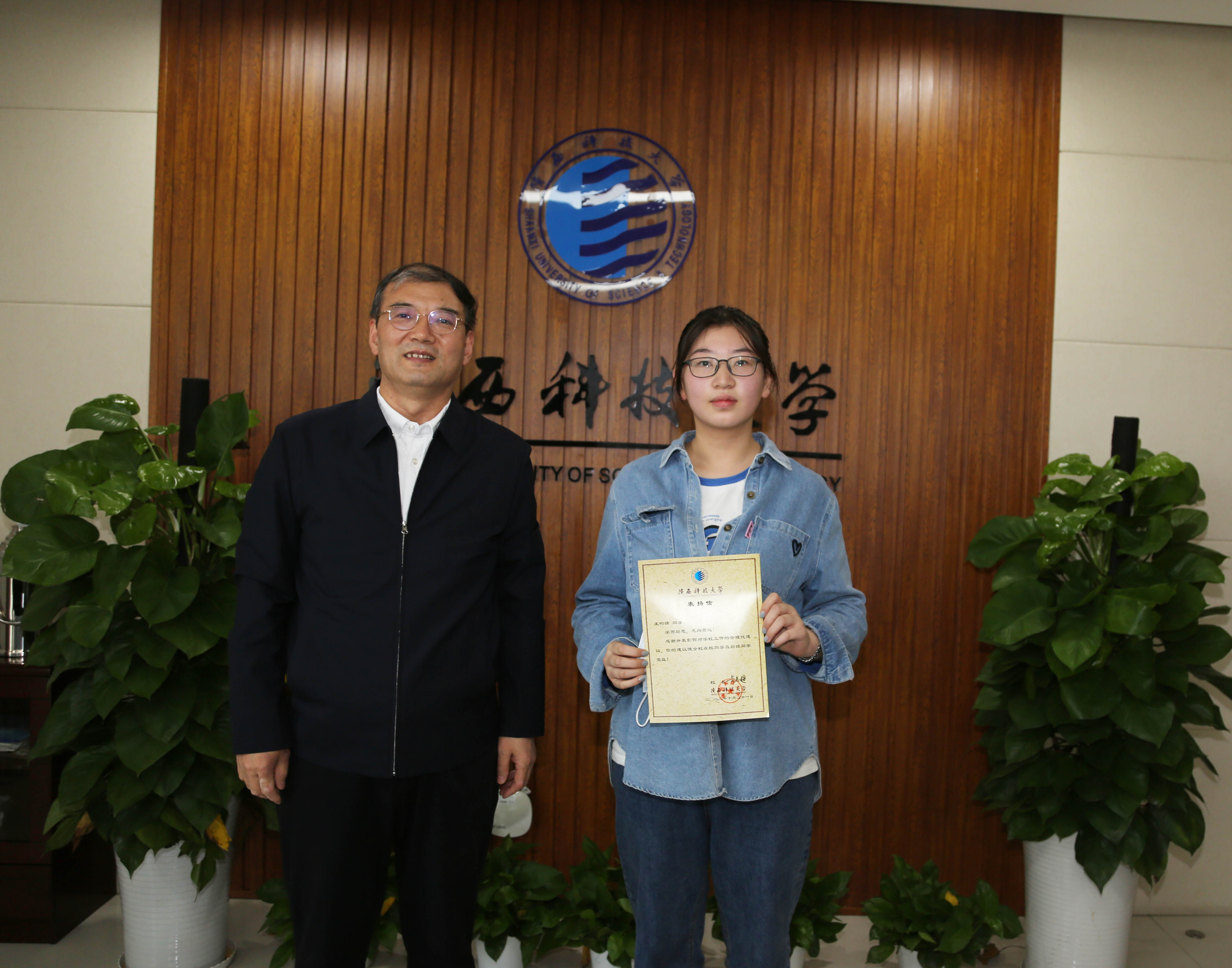 座談會上,李志健向?qū)W校工作提出的合理化建議的學生表示感謝,并為其送上親筆簽名的表揚信。