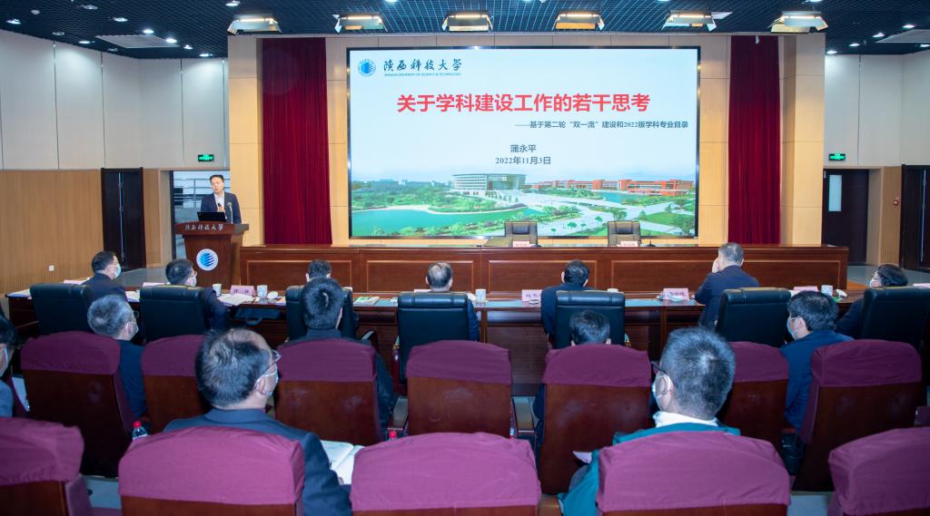 蒲永平作題為《關(guān)于學(xué)科建設(shè)工作的若干思考——基于第二輪“雙一流”建設(shè)和2022版學(xué)科專業(yè)目錄》的專題報(bào)告。報(bào)告分析了國(guó)家兩輪“雙一流”建設(shè)的情況,詳細(xì)解讀了《關(guān)于深入推進(jìn)世界一流大學(xué)和一流學(xué)科建設(shè)的若干意見》及《2022版研究生教育學(xué)科專業(yè)目錄》,系統(tǒng)分析了新版學(xué)科專業(yè)目錄下我校學(xué)科專業(yè)的變化,并從“全力做好2023年重點(diǎn)工作、系統(tǒng)謀劃“雙一流”建設(shè)工作、強(qiáng)有力推進(jìn)學(xué)校轉(zhuǎn)型發(fā)展”三個(gè)方面提出了對(duì)我校學(xué)科建設(shè)工作的若干思考。