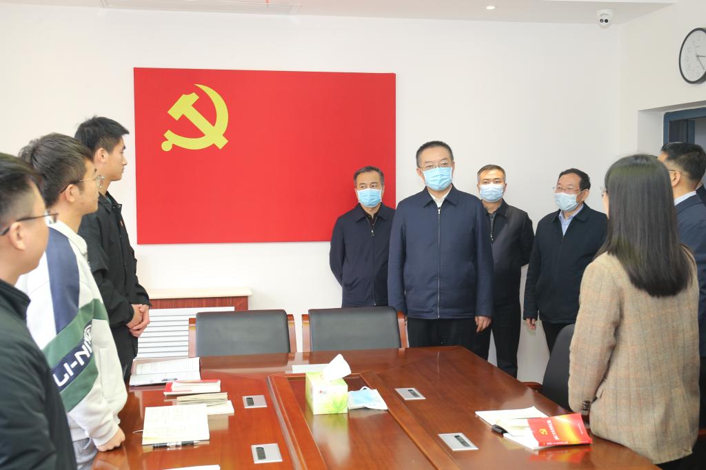宣講前,李春臨深入我校前沿院現(xiàn)代儀器分析中心、網(wǎng)絡(luò)思政工作中心、食品科學(xué)與工程學(xué)院(生物與醫(yī)藥學(xué)院),調(diào)研了高校黨建、學(xué)科建設(shè)、科技創(chuàng)新等工作。