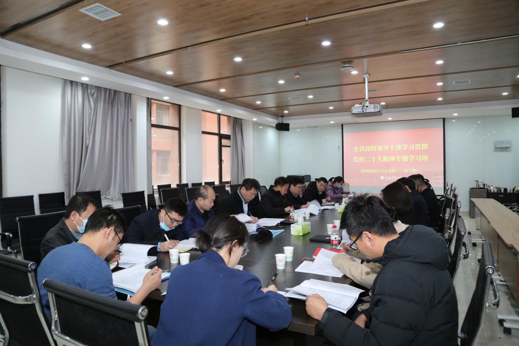 為深入學(xué)習(xí)貫徹黨的二十大精神,引導(dǎo)廣大干部認(rèn)真領(lǐng)悟黨的二十大提出的新思想新論斷、作出的新部署新要求,切實(shí)把思想和行動(dòng)統(tǒng)一到黨的二十大精神上來,按照省委教育工委、學(xué)校黨委有關(guān)工作安排,2月20日至24日,我校組織全體中層以上領(lǐng)導(dǎo)干部參加全省高校領(lǐng)導(dǎo)干部學(xué)習(xí)貫徹黨的二十大精神專題學(xué)習(xí)班。