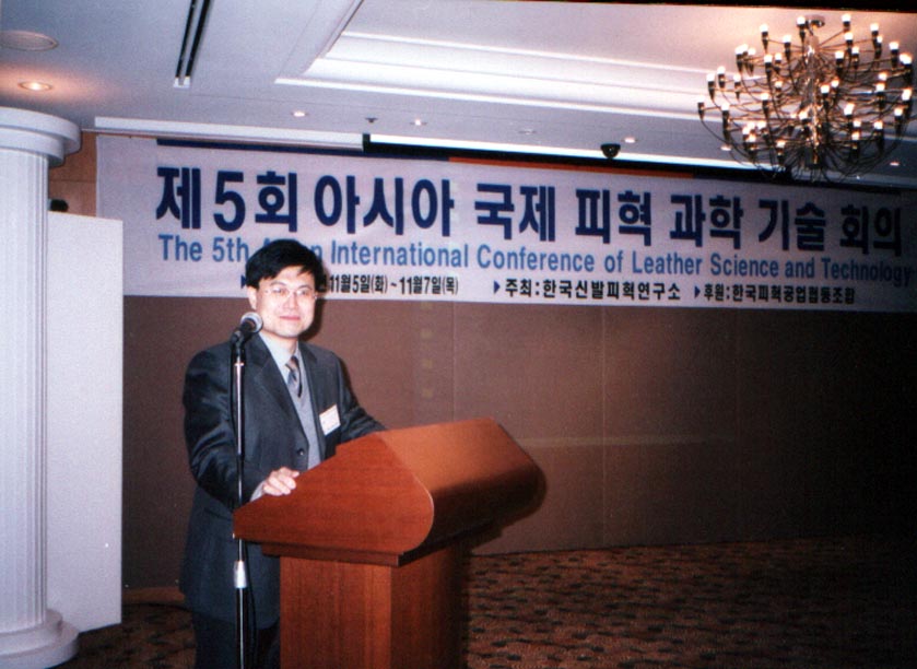 2002年,馬建中教授參加在韓國舉辦的國際皮革會議并作大會報告