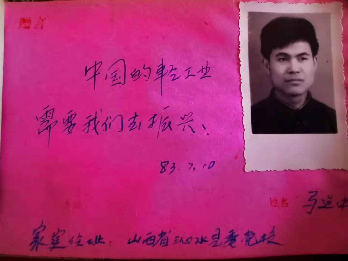 稼穡艱勞勤砥礪,出身畎畝愈奮發(fā)。1978年6月,“新三屆”的考場上千軍萬馬,一雙因農(nóng)活而長滿老繭的手奮筆疾書,一顆因機(jī)遇而感恩的心不停顫抖。9月,馬建中以378.5分的成績名列沁水縣第2名,這個在三年自然災(zāi)害中出生、在十年浩劫中長大的農(nóng)民子弟不負(fù)眾望,考入我國第一所輕工業(yè)高等院校西北輕工業(yè)學(xué)院(現(xiàn)陜西科技大學(xué))輕化工專業(yè)。