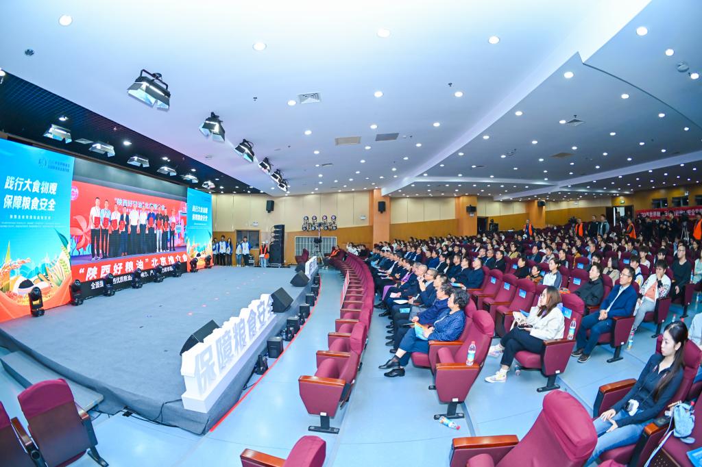 陜西省2023年世界糧食日和全國糧食安全宣傳周主會場活動于10月16日在我校圖書館報告廳舉行,本次活動由陜西省糧食和物資儲備局、省農業(yè)農村廳、省教育廳、省科學技術廳、省婦聯(lián)、陜西科技大學共同主辦,2023年全國糧食安全宣傳周主題為“踐行大食物觀 保障糧食安全”。校長李志健會見了與會嘉賓,副校長黃劍鋒出席活動并代表學校致辭。省發(fā)改委黨組成員、省糧食和物資儲備局局長楊林,省科技工委委員、省科學技術廳二級巡視員郭杰,省婦女聯(lián)合會黨組成員、副主席張曉燕,省教育廳發(fā)展規(guī)劃處二級調研員田保衛(wèi),省農業(yè)農村廳種植業(yè)處副處長張超,陜西糧農集團有限責任公司黨委書記、董事長劉利民,中儲糧西安分公司黨委常委、副總經理李健,中化現代農業(yè)(陜西)有限公司農產負責人焦高淇出席活動,我校食品科學與工程學院200余名師生代表參加了本次活動。