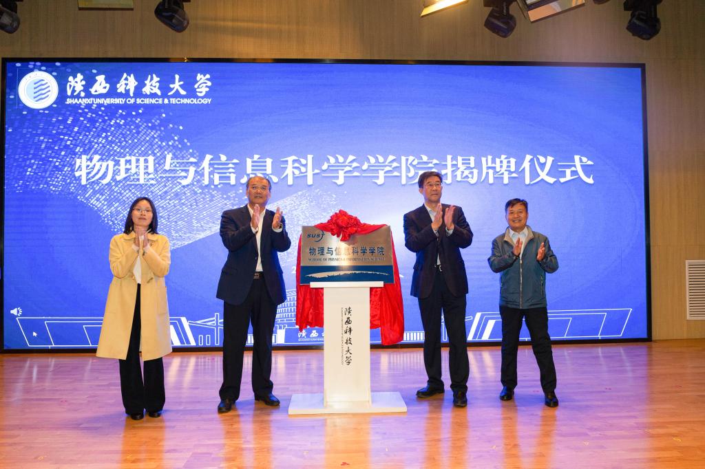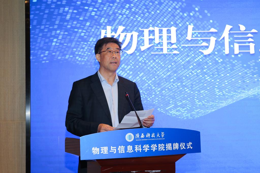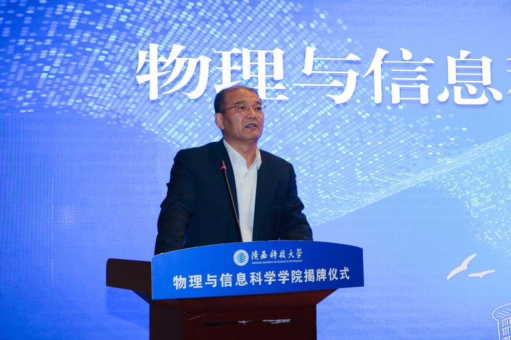 11月3日,陜西科技大學(xué)物理與信息科學(xué)學(xué)院揭牌儀式在人文樓小劇場舉行。校長李志健、校黨委副書記郭強(qiáng)出席儀式,陜西省物理學(xué)會副理事長兼秘書長、俄羅斯工程院外籍院士白晉濤教授,西安交通大學(xué)物理學(xué)院、西安電子科技大學(xué)物理學(xué)院、西北大學(xué)物理學(xué)院、西安理工大學(xué)理學(xué)院、西安工業(yè)大學(xué)基礎(chǔ)學(xué)院、寶雞文理學(xué)院物理與光電技術(shù)學(xué)院、中國科學(xué)院國家授時中心、陜西省光學(xué)學(xué)會、中國科學(xué)院西安光機(jī)所等兄弟院校和科研院所領(lǐng)導(dǎo)到會祝賀。副校長李學(xué)軍主持揭牌儀式。