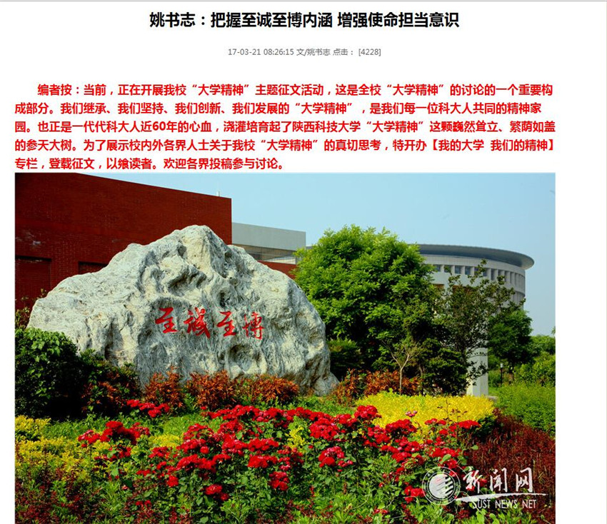 “大學(xué)精神是一個大學(xué)的精神烙印,我校大學(xué)精神離不開一代代科大人在建校、搬遷過程中展現(xiàn)的自強不息精神與三實作風(fēng),以及跟隨時代變遷與時俱進謀求發(fā)展的精神,需要在集思廣益基礎(chǔ)上,不斷深挖、提煉、發(fā)揚。”